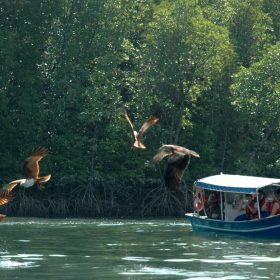 Make your first stop when the boatman stops the engine and throws some chicken pieces out into the water to invite the eagles. Marvel as eagles dive down just next to you and claw up the chicken pieces as they soar into the sky. Then, venture out of the mangroves to admire majestic limestone rock formations and sea stacks that rise dramatically from the ocean. This ancient coral thrust into the sky millions of years ago is home to a unique and ancient group of plants found nowhere else on Earth.